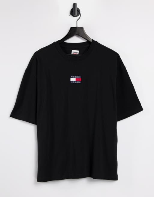 Tommy Jeans oversized crew neck flag logo t shirt in black