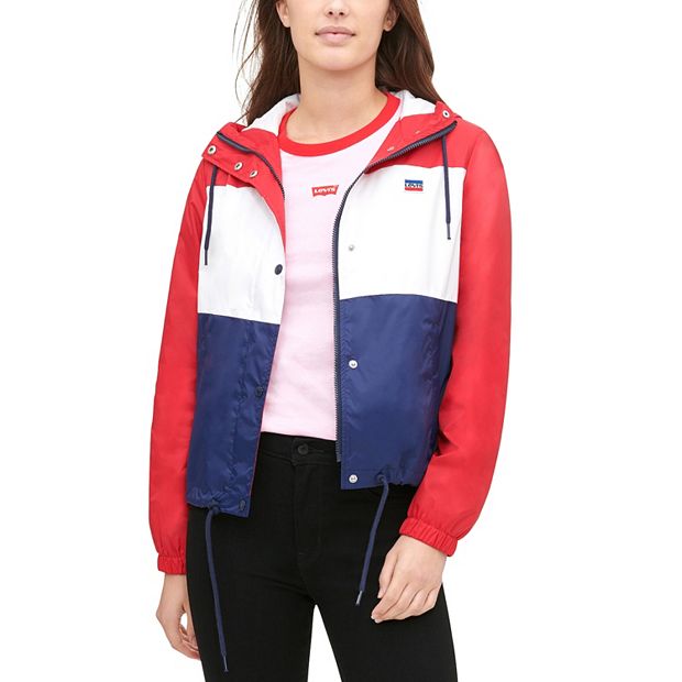 Levi s Women s Retro Hooded Rain Windbreaker Jacket Standard Plus Sizes Red Small