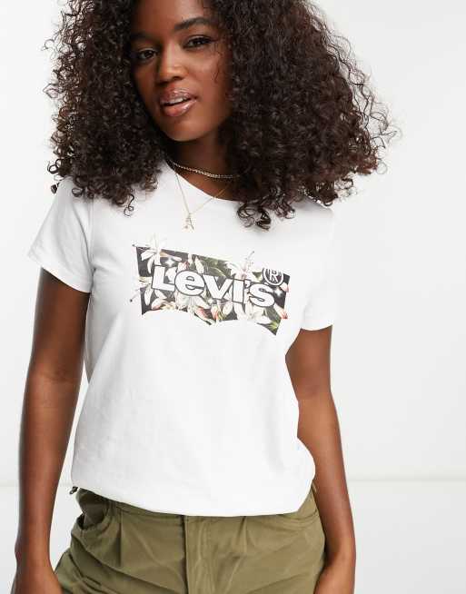 Levis floral t top shirt, Levi s t shirt in white with floral print batwing logo top