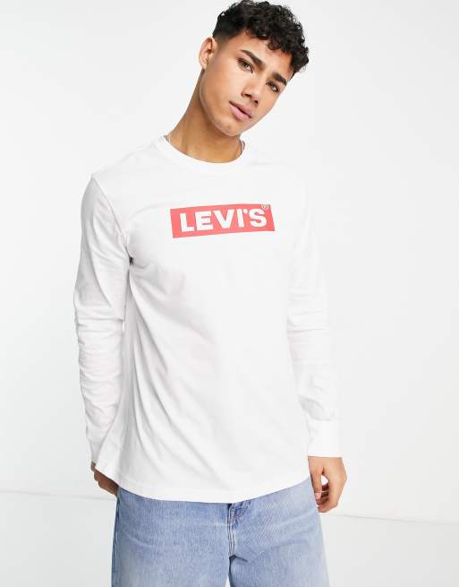Levi s long sleeve t shirt with boxtab logo in white ASOS