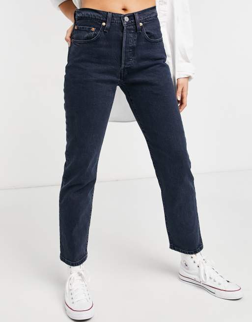 Levi s 501 high rise straight leg crop jeans in dark navy
