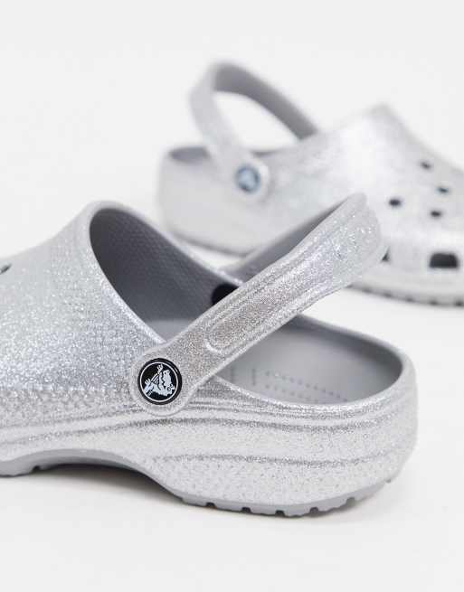 Crocs classic glitter clogs in silver