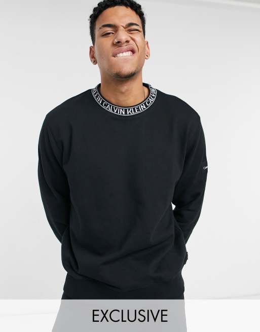 Calvin Klein exclusive to Asos neck logo relaxed fit sweatshirt in ck black