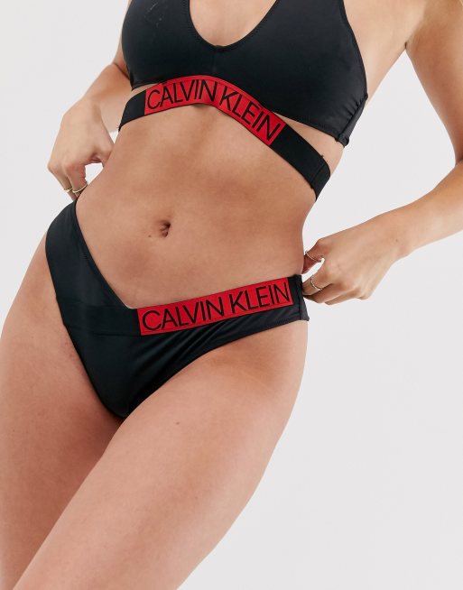 Brazilian bikini bottom top black calvin klein, Calvin Klein Intense Power logo high leg brazillian bikini bottom in black top