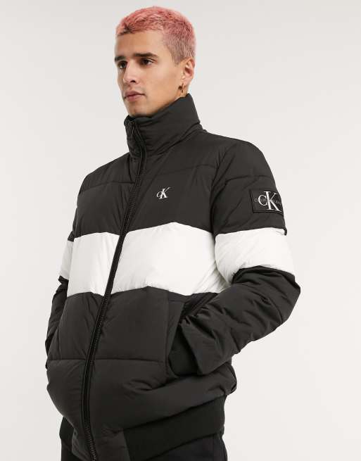 Calvin Klein Jeans puffer jacket in black with chest stripe ASOS