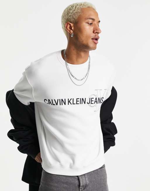 Calvin Klein Jeans institutional graphic logo sweatshirt in white