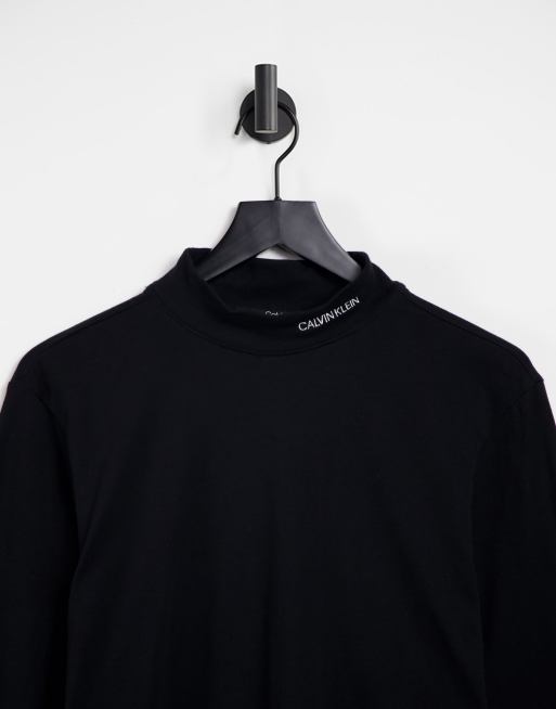 Calvin Klein neck logo high neck long sleeve top in black