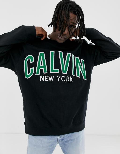 Calvin klein new top sweater, Calvin Klein Jeans large varsity logo crew neck sweatshirt in black top