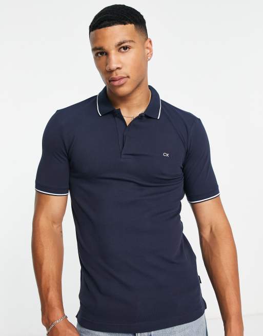 Calvin Klein stretch pique tipping slim fit polo in navy