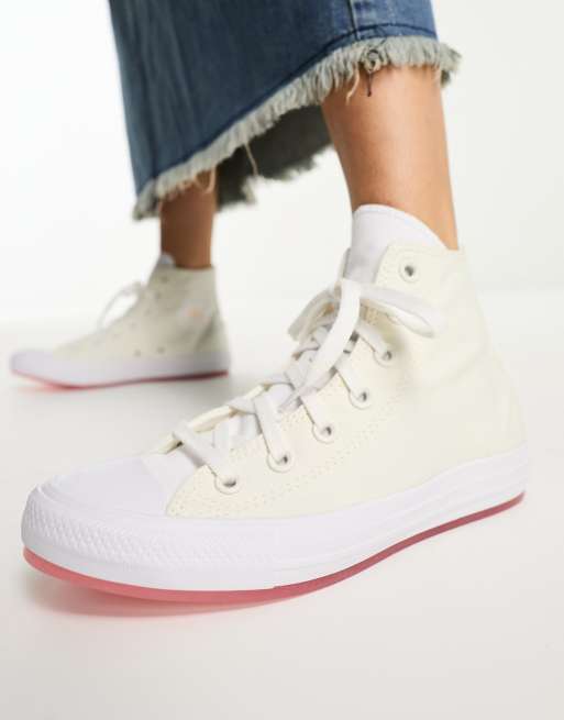 Converse Chuck Taylor All Star hi trainers in cream with pink sole