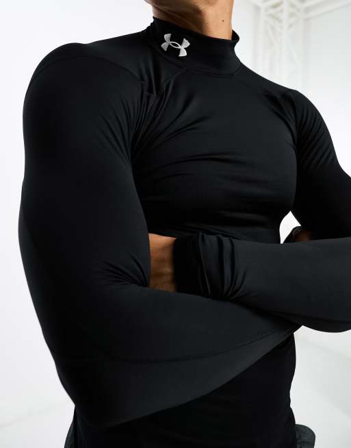 Under Armour Cold Gear Armour long sleeve mock neck fitted t shirt in black