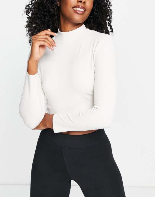 Nike Yoga Luxe Dri FIT cropped long sleeve top in off white