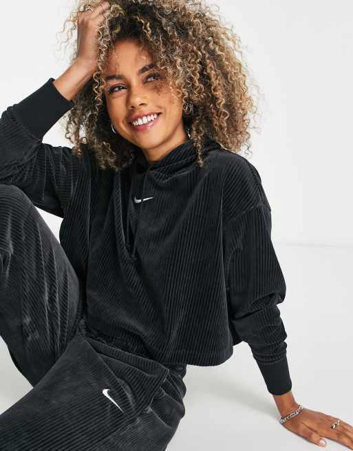 Nike top hoodie pullover, Nike velour cord pullover hoodie in black top