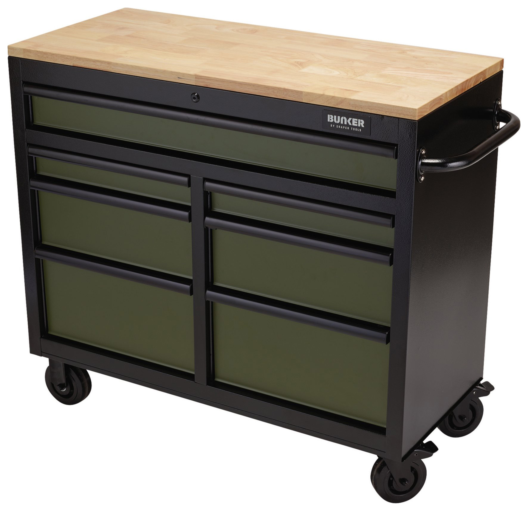 Wickes workbench top, BUNKER Green 7 Drawer Workbench Roller Tool Cabinet 41in top