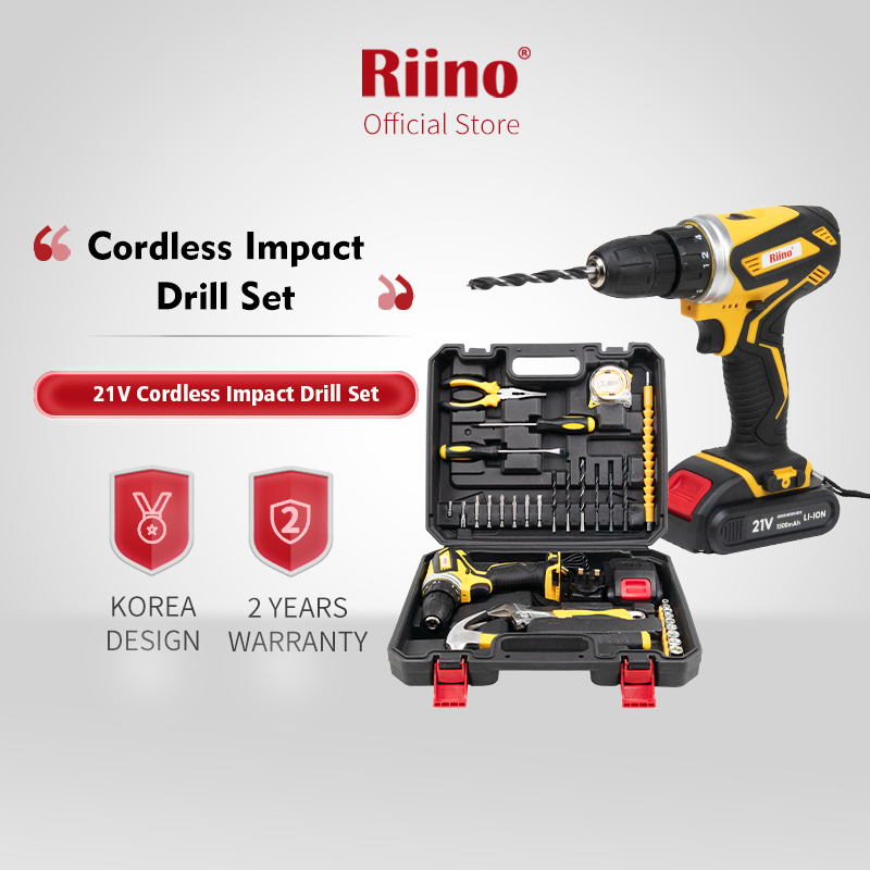 Riino Electric Cordless Impact Drill Set 21V Extra Free Gift Set