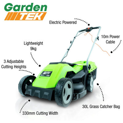 Gardentek 33CM Corded Electric 1200W 230V Roller Mulching Lawn