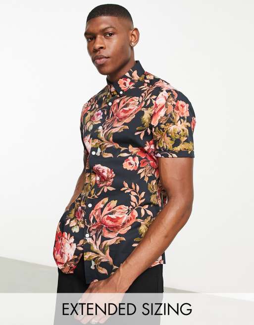 ASOS DESIGN stretch slim shirt in black and red floral print ASOS