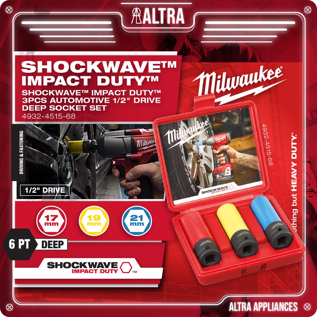 MILWAUKEE 3PCS SHOCKWAVE AUTOMOTIVE IMPACT SOCKET SET 17mm