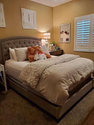 Jerary Queen Upholstered Bed with Tufted Headboard and Shelter