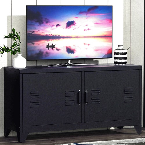 Industrial TV Cabinet Stand Media Center Steel Shelf Doors Storage Home Office