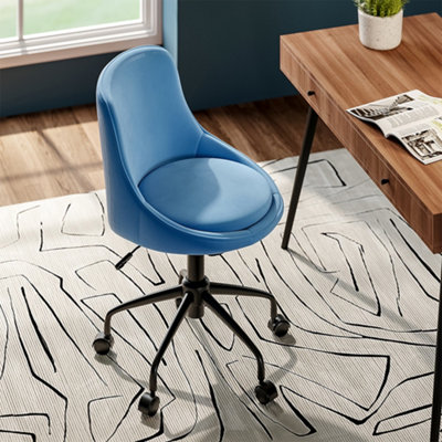 Livingandhome Blue Velvet Swivel Adjustable Height Home Ergonomic
