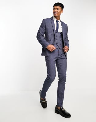 ASOS DESIGN wedding skinny suit jacket in dark blue micro texture