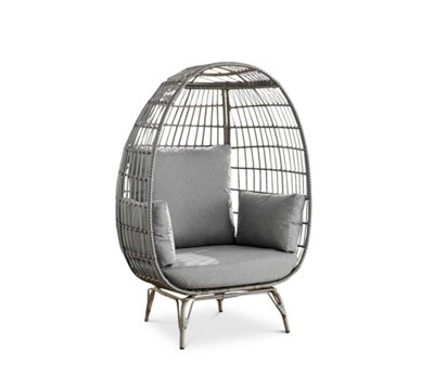 Furniturebox Grey PE Rattan Luxury Outdoor Metal Leg Egg Chair For