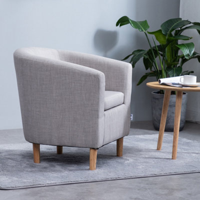 Livingandhome Light Grey Linen Upholstered Accent Bucket Tub Chair