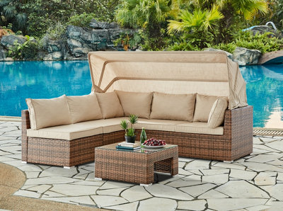 Rhodes Rattan Sun bed Garden Furniture Set Outdoor Lounge Sofa