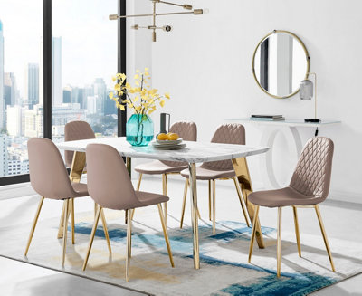 ANDRIA White Marble Effect Gold Leg Dining Table 6 Cappuccino