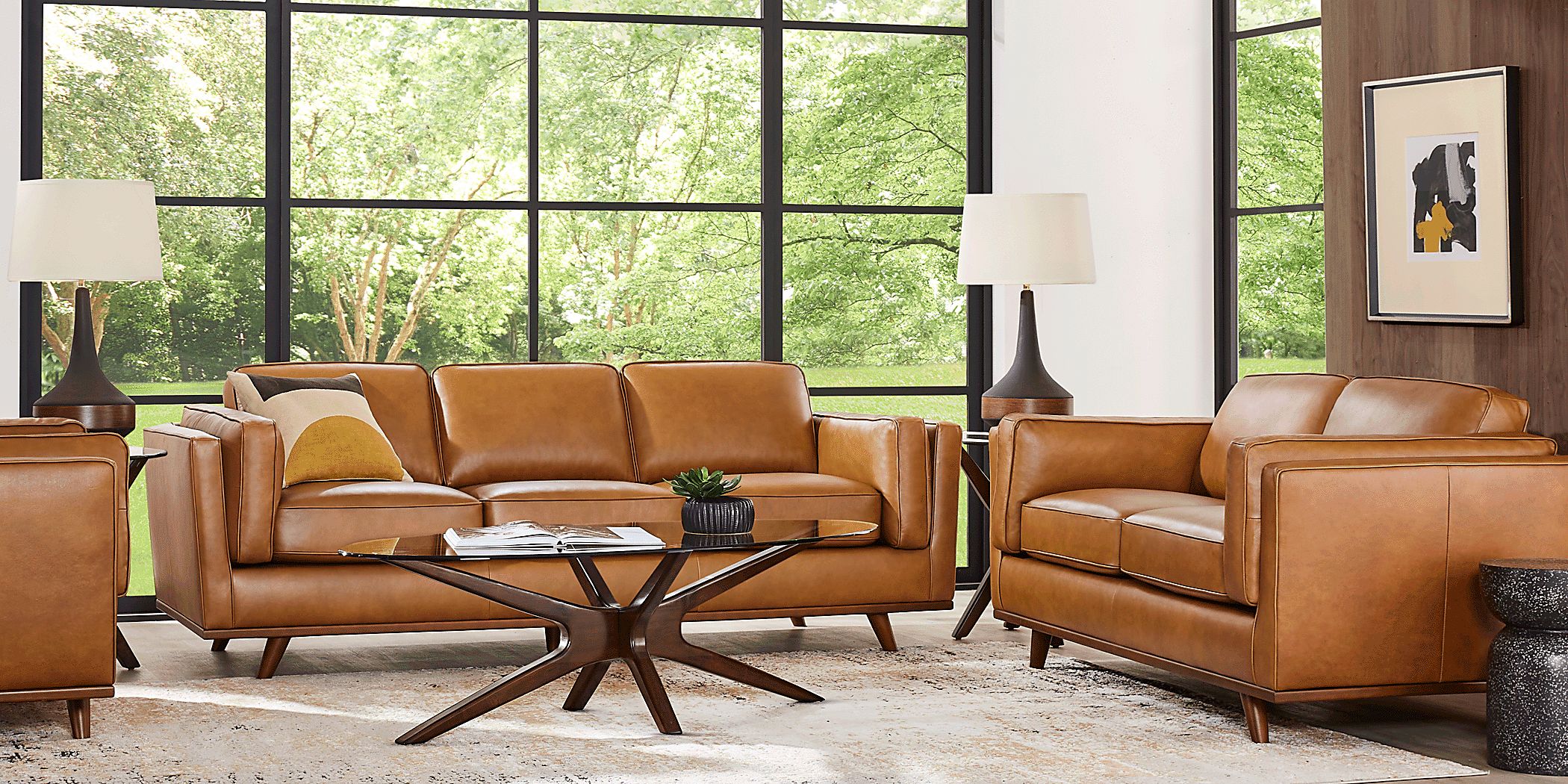 Rooms to top go leather loveseat, Duluth Caramel Brown Leather Loveseat Rooms To Go top
