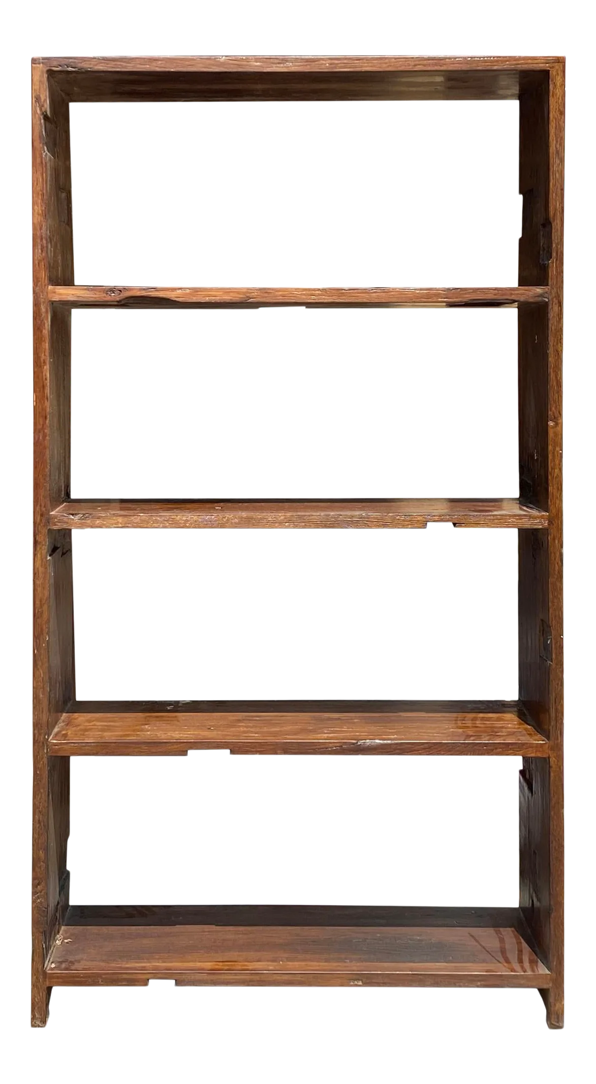 Rustic Raw Old Wood Open Shelf Brown Bookcase Display Cabinet