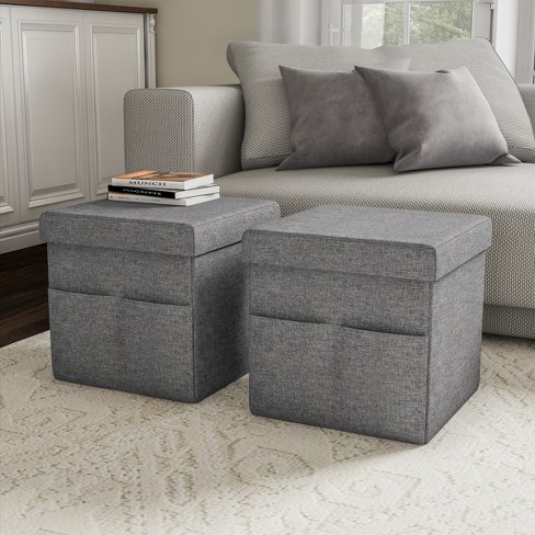 Hastings Home 15 inch Storage Ottomans With Pockets Folding Foot