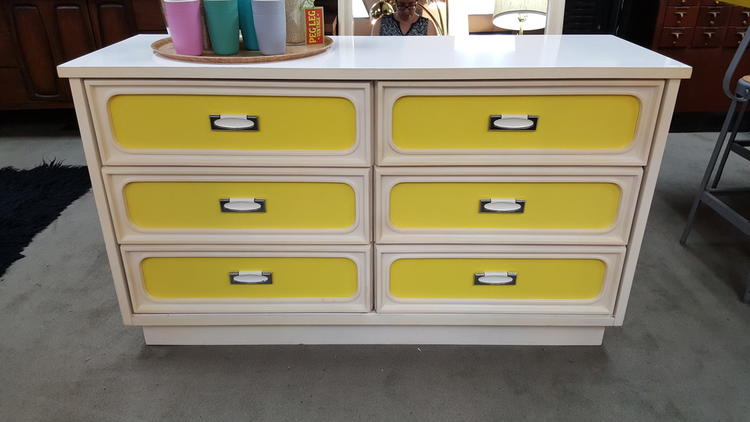 60s Mod White 6 Drawer Dresser with Reversible Yellow or Lime