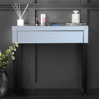 Laguna Grey Mirrored Dressing Table With Drawer Glass Design Crystal Handle Perfect For Bedroom Makeup Jewellery Storage