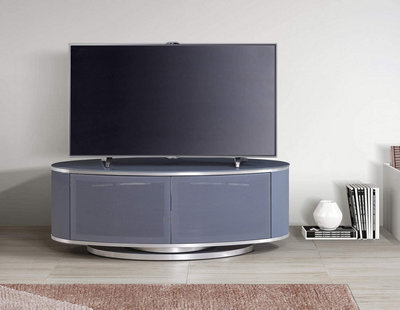 Mda luna high gloss white oval top tv cabinet stand, MDA Designs LUNA Grey Oval Cabinet with Grey Profiles and Grey top