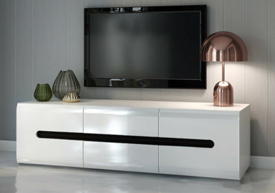 Modern White Gloss TV Stand Cabinet Drawer Low Unit 150cm Black Brown Azteca White Gloss