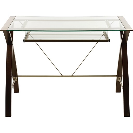 Staples glass top top desk, Lynx glass top compact computer desk for 30 Clark Deals top