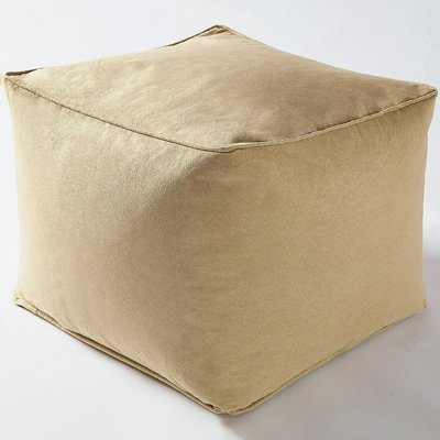 Cream Faux Suede Cube Pouffe Footrest Stain Spill Resistant