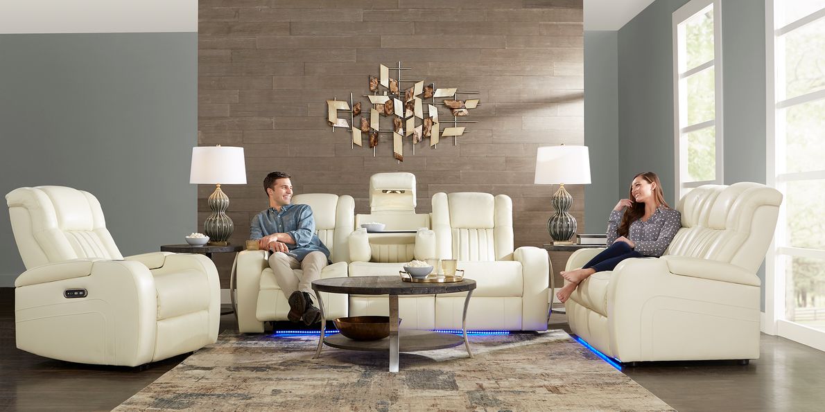 Cenova top reclining sofa, Cenova Ivory Leather 7 Pc Living Room with Dual Power Reclining Sofa top