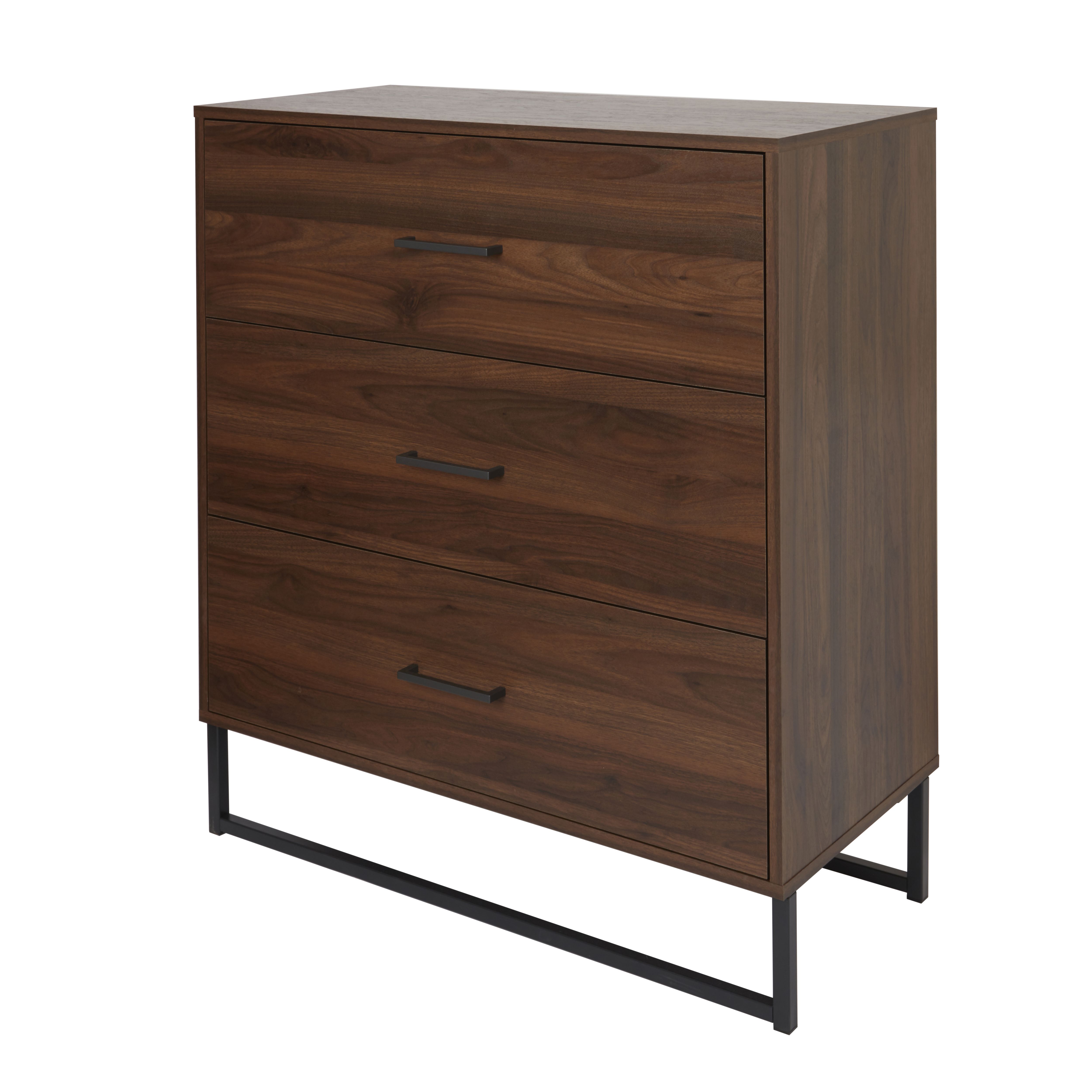 Cheap flat pack top chest of drawers, Zorras Matt walnut effect 3 Drawer Industrial Chest of drawers H top