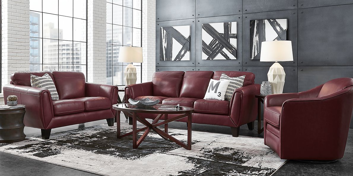 Livorno Lane 5 Pc Red Leather Living Room Set With Sofa Loveseat 3 Pc Table Set