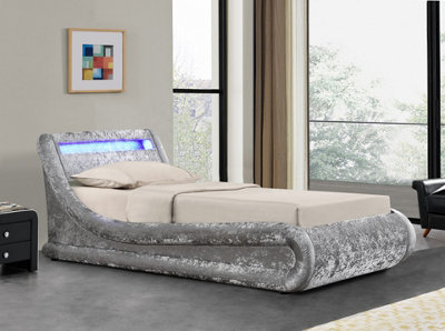 Sleep Design Madrid 4ft6 Double Silver Crushed Velvet Ottoman Bed Frame With LED Lights