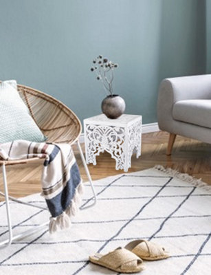 Beautiful White Square Hand Carved Indian Wooden Side End Coffee