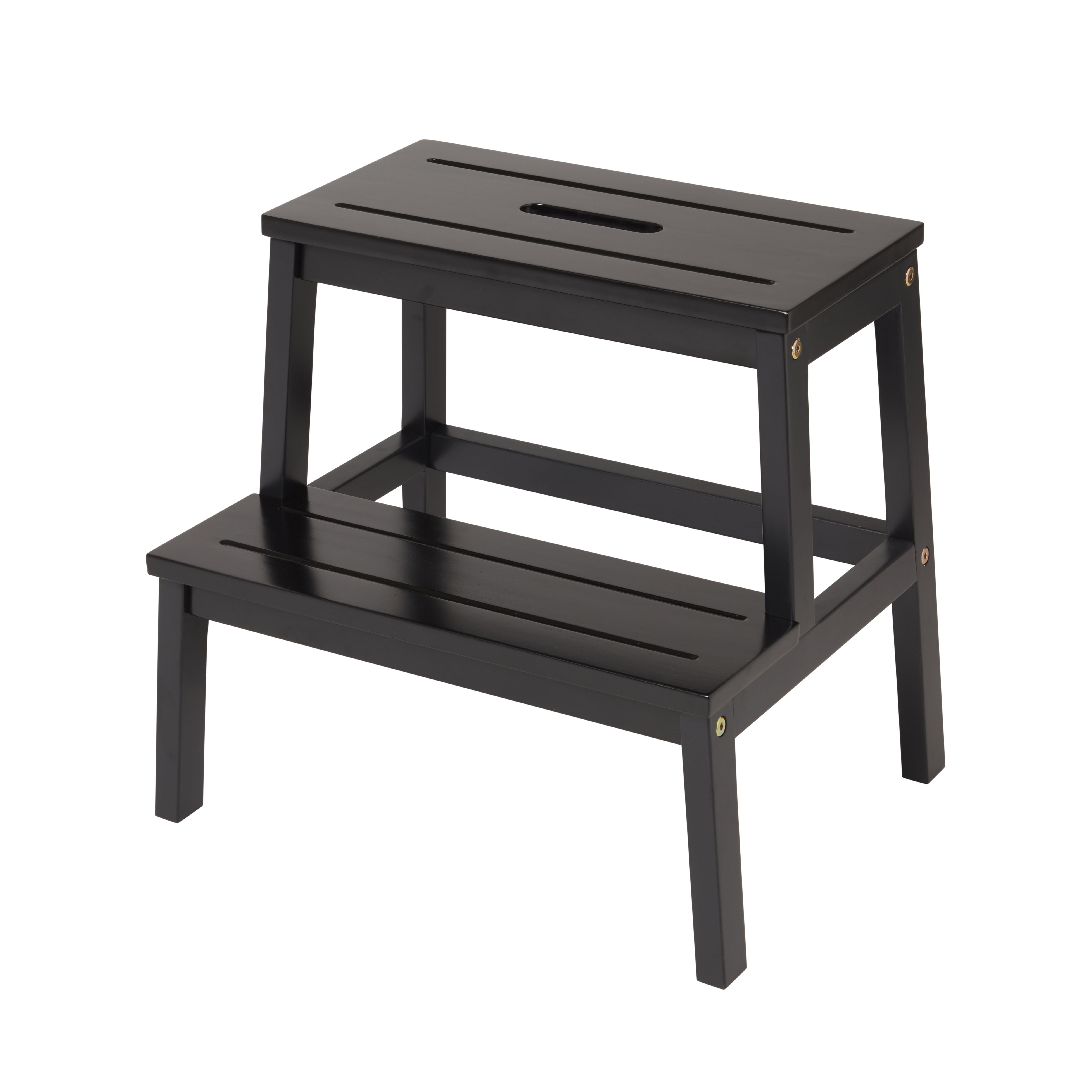 Black step stool top wood, GoodHome 2 tread Timber Step stool H 0.4m top