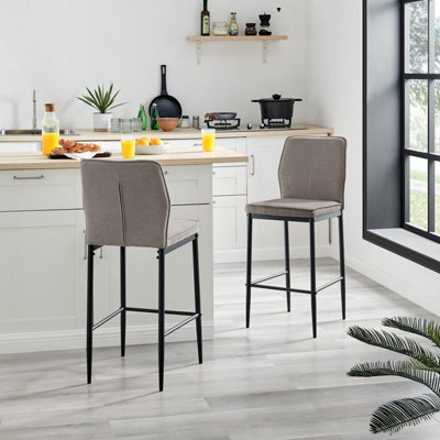 Furniturebox UK 2x Bar Stool Chair Nika Pale Taupe Beige Fabric