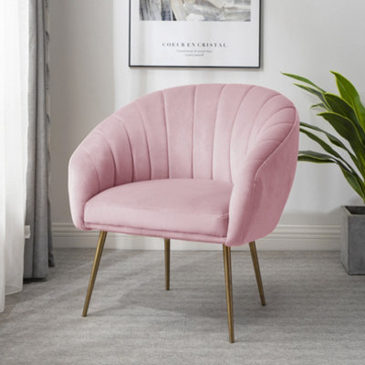 Helena 74cm wide Pink Shell Back Velvet Fabric Accent Chair with Brass Coloured Steel Legs