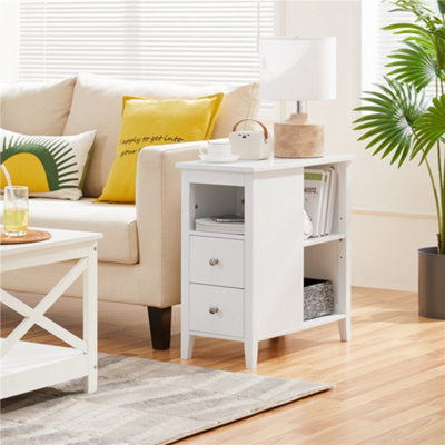 Yaheetech Narrow White Bedside Table Nightstand with 2 Drawers 3 Shelves