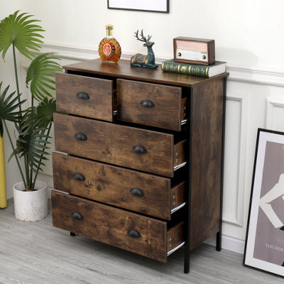 Industrial look top chest of drawers, FurnitureHMD Industrial Style Chest with 5 Drawers Organizer Unit Metal Legs Storage Cabinet top