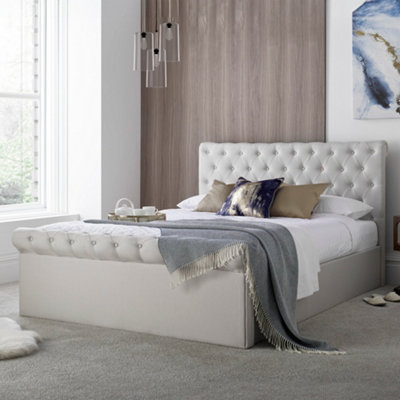 Chesterfield Off White Upholstered Ottoman King Size Bed Frame